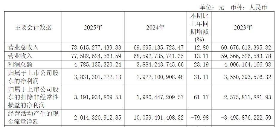 年报显示,2025年,东方电气实现营业收入775.82亿元,同比增长13.11%;实现归母净利润38.31亿元,同比增长31.11%;实现扣非净利润31.91亿元,同比增长61.17%;实现基本每股收益1.15元。分红方面,公司拟以当前总股本为基数,向全体股东每10股派发现金红利5.3元(含税)。