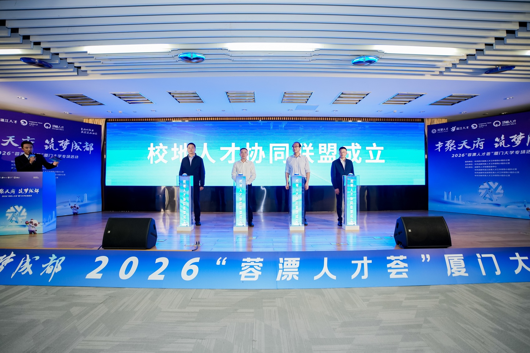3月26日,“才聚天府·筑梦成都”——2026“蓉漂人才荟”厦门大学专场活动举行。本次活动由成都市委人才办主办,成都市人才发展促进中心、成都市温江区委人才办、成都市龙泉驿区委人才办、邛崃市委人才办联合承办,成都温江人才发展有限公司具体执行,以“更好的成都,成就更好的你”为主题,通过城市推介、双选对接等多元环节,搭建跨越千里的校地合作新桥梁,向身处“鹭岛之滨”的高校学子发出“锦江之畔”的蓉城之约。