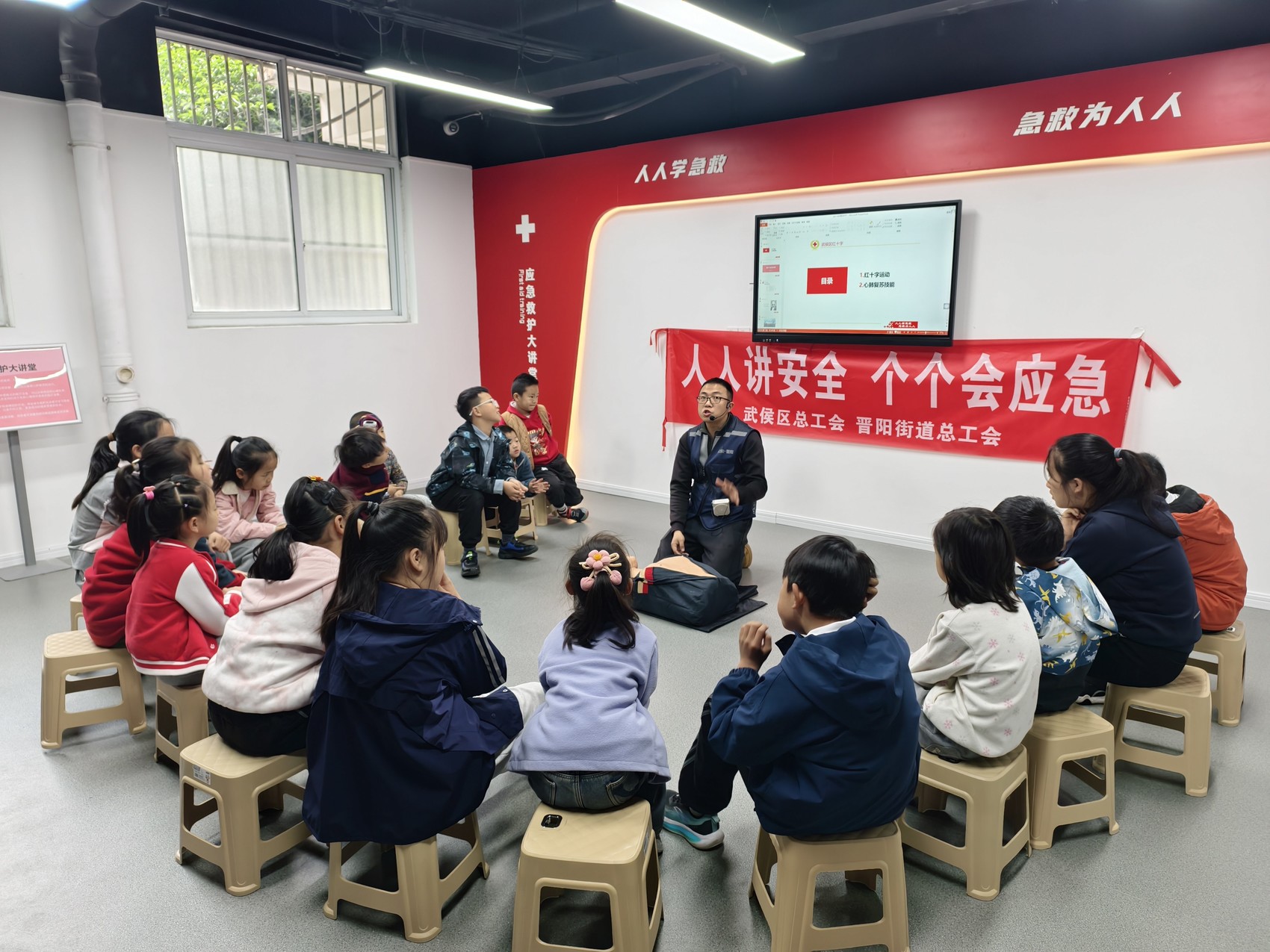 将服务延伸至职工“家门口”,是此次系统化服务的重要一环。晋阳街道总工会将“与工会‘童’行 春假‘趣’研学”活动场地设在了社区安全应急体验馆。孩子们通过模拟演练学习心肺复苏、燃气安全等实用技能,让安全教育从“纸上谈兵”变为“亲身实践”。随后的手工彩绘风筝、制作青团等活动,则增添了假期的趣味与传统韵味。