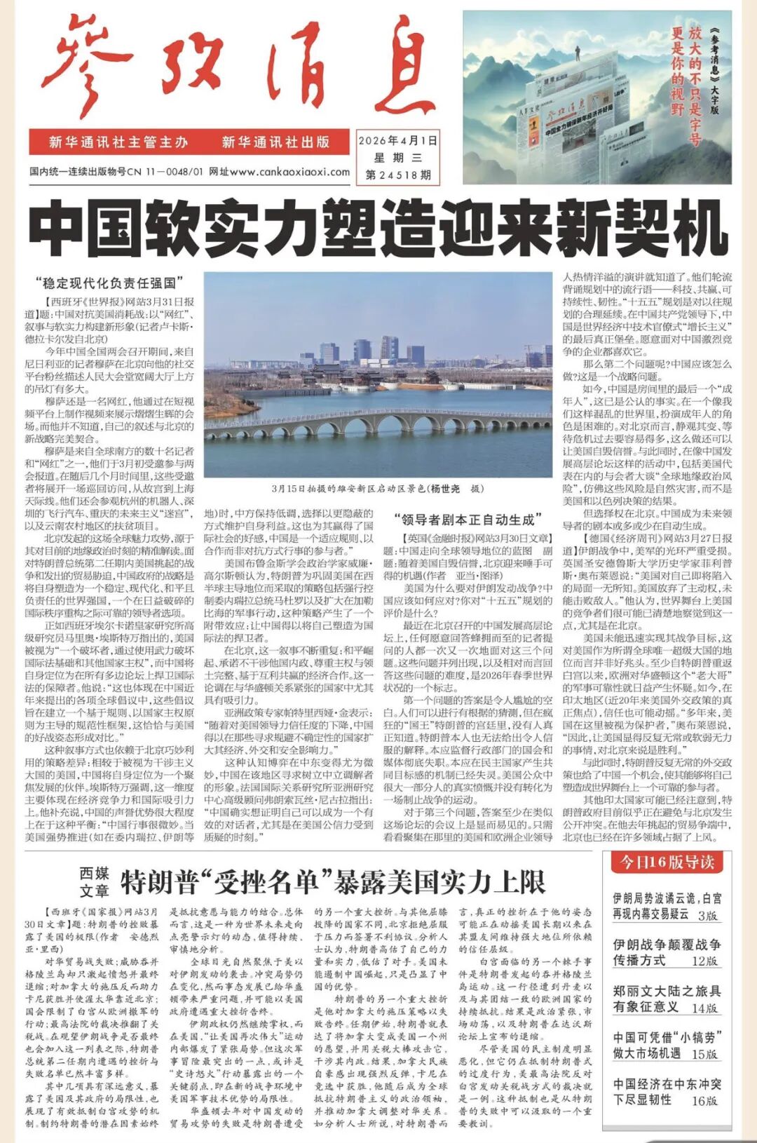 今日出版的《参考消息》数字报,五大看点不容错过。