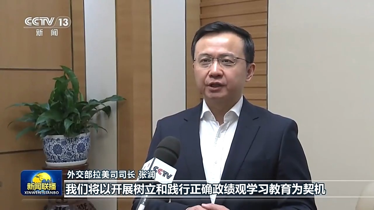 外交部拉美司司长 张润:我们将以开展树立和践行正确政绩观学习教育为契机,进一步铸牢政治忠诚,深刻领悟“两个确立”的决定性意义,坚决做到“两个维护”。以习近平外交思想为指引,高举构建人类命运共同体旗帜,努力提升中国特色大国外交能力,坚决维护国家主权、安全和发展利益,为推进强国建设民族复兴伟业营造更有利国际环境,提供更坚实战略支撑。