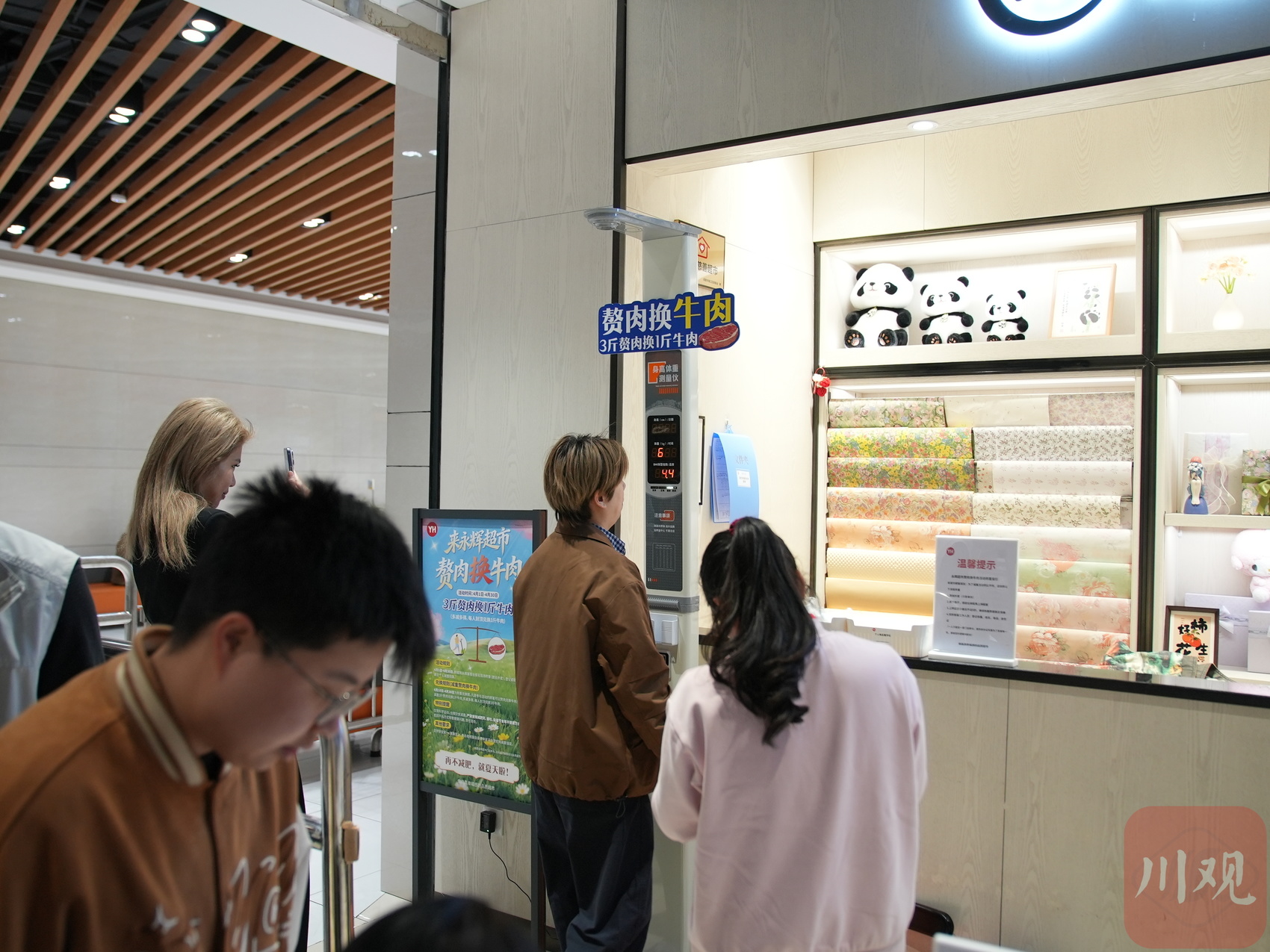 4月1日,成都 23 家永辉“胖东来调改店”同步启动 “赘肉换牛肉” 趣味活动。上午 10 点,永辉锦江文华店客服台前,十几位市民正排队登记、脱外套称重。