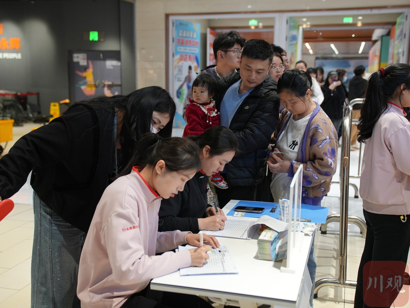 门店工作人员介绍,从一早开门起,咨询、报名的人就没断过,以年轻人、家庭主妇居多,“很多人特意来报名,就为领参与活动的‘健康任务卡’”。