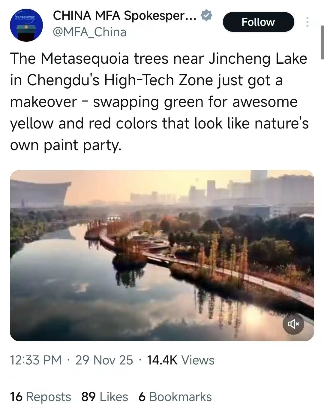通过外交部点赞成都之美,全世界也看到了中国式现代化的万千气象。