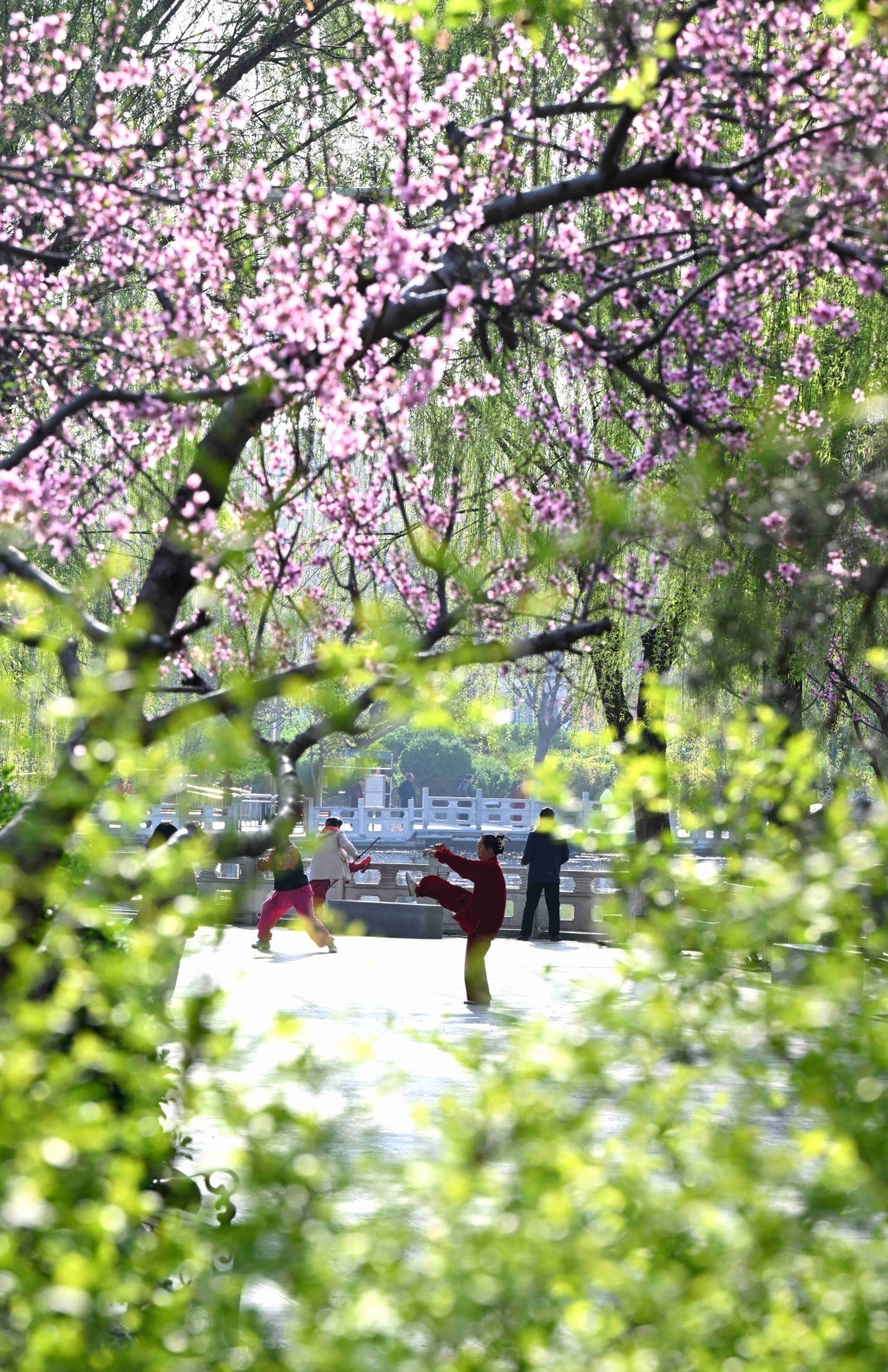 4月1日,市民在河北省石家庄市桥西区元南公园晨练。