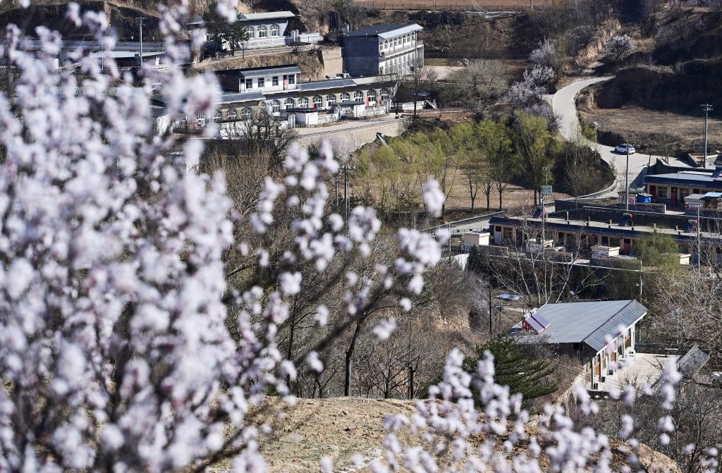 延安市宝塔区枣园街道庙沟村春景(4月1日摄)。