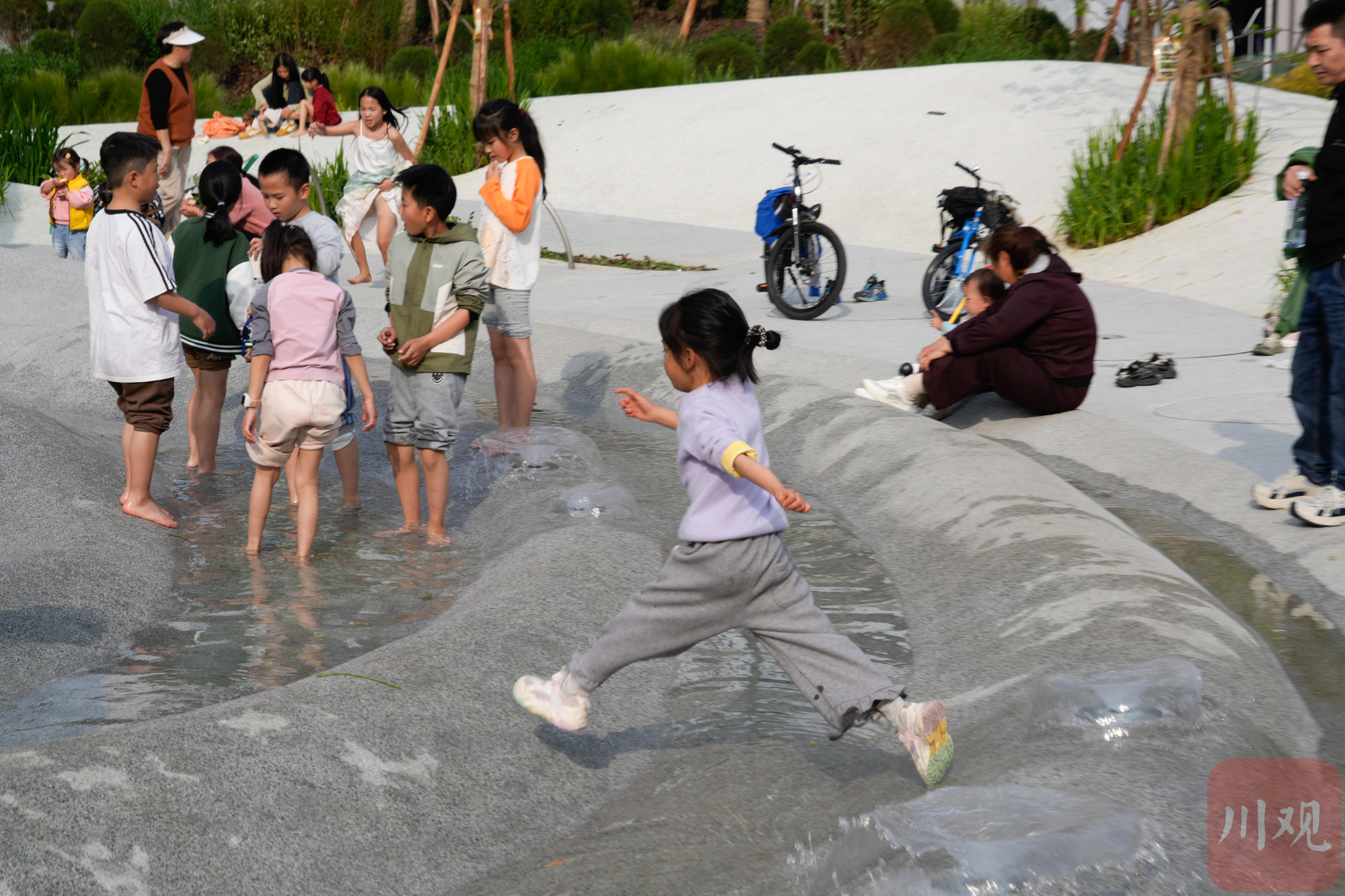 值得一提的是,项目设计还引入了戏水交互理念,增添了春日游园的趣味与活力。不少家长陪着孩子玩水撒欢,自己则在草坡上晒太阳、享受春光。五大主题区域各具特色,让这座新开放的公园既有童真趣味,也有邻里共享的舒适氛围。