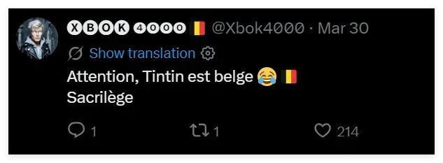 从铃木发布的帖文来看,虽然他的评论区里有法国网民在为他的这番模仿秀叫好,但也有比利时等国的网民强调说,丁丁是比利时人,不是法国人。