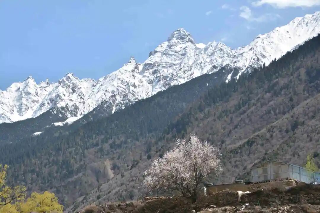 海拔约3100米的尼屋乡,是那曲市海拔最低的地方,也是春天最早抵达的地方。当藏北腹地大部分草场还在等待回暖,易贡藏布河谷的千年野桃林已悄然披上粉妆。