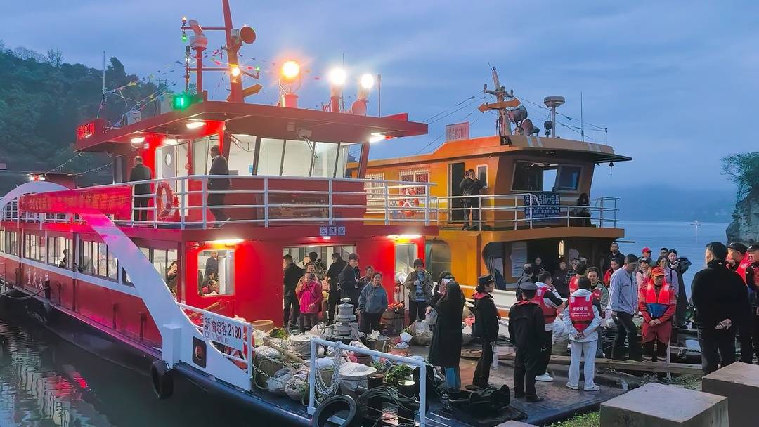 “渝忠客2180”,不止是一艘渡轮,它更是沿江村民离不开的“水上公交”。日复一日,搭载挑着菜筐的老人、背着书包的孩子、拉着农资的乡亲出行。如今,老船换新船,“新渝忠客2180”正式接替“渝忠客2180”,载着沿江村民继续出发。