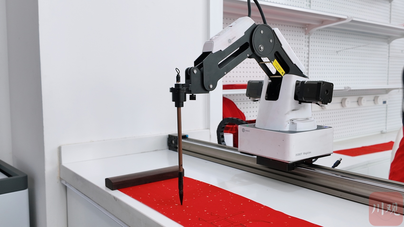 智能书法机器人正在写毛笔字。