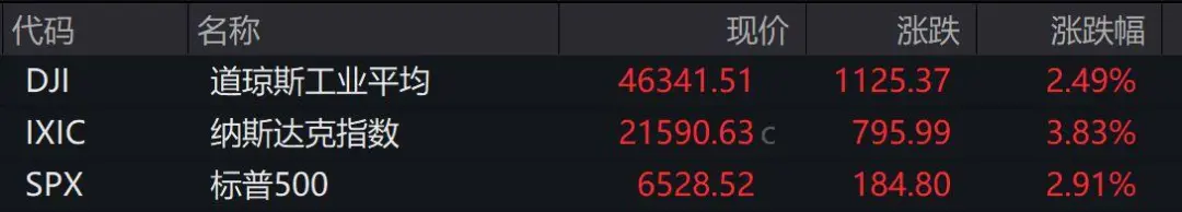 美东时间3月31日16:00(北京时间4月1日4:00),道指收涨1125.37点,报46341.51点,涨幅为2.49%;纳指收涨795.99点,报21590.63点,涨幅为3.83%;标普500指数收涨184.80点,报6528.52点,涨幅为2.91%。