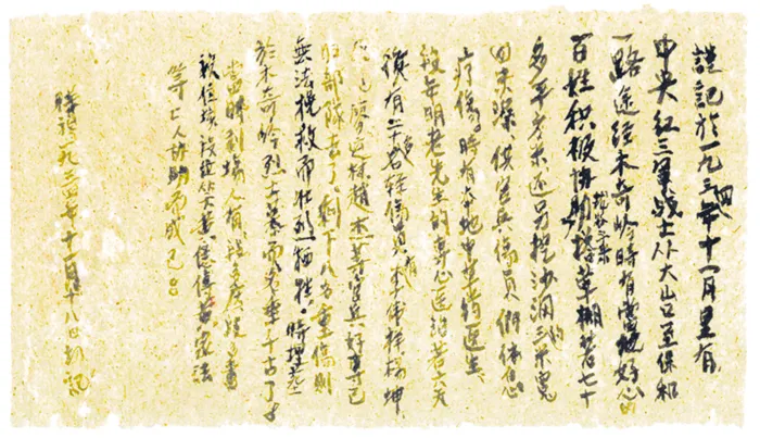 △良田、菜岭村民帮助救治红军战士记事 郴州市档案馆供图