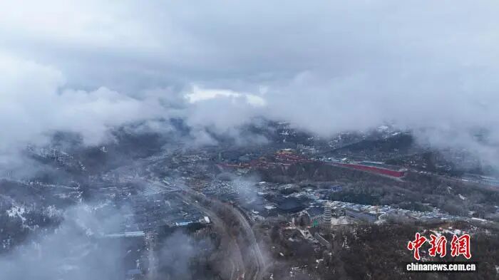 五台山雾凇云海齐现,春日山间宛若仙境。