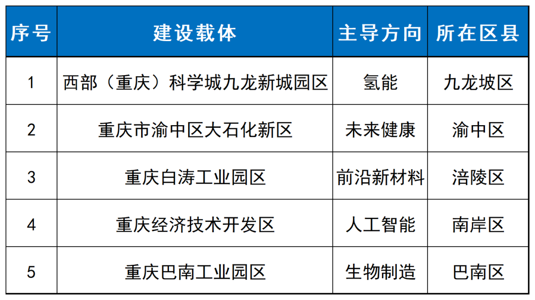 其中,重庆市未来产业先导区5个