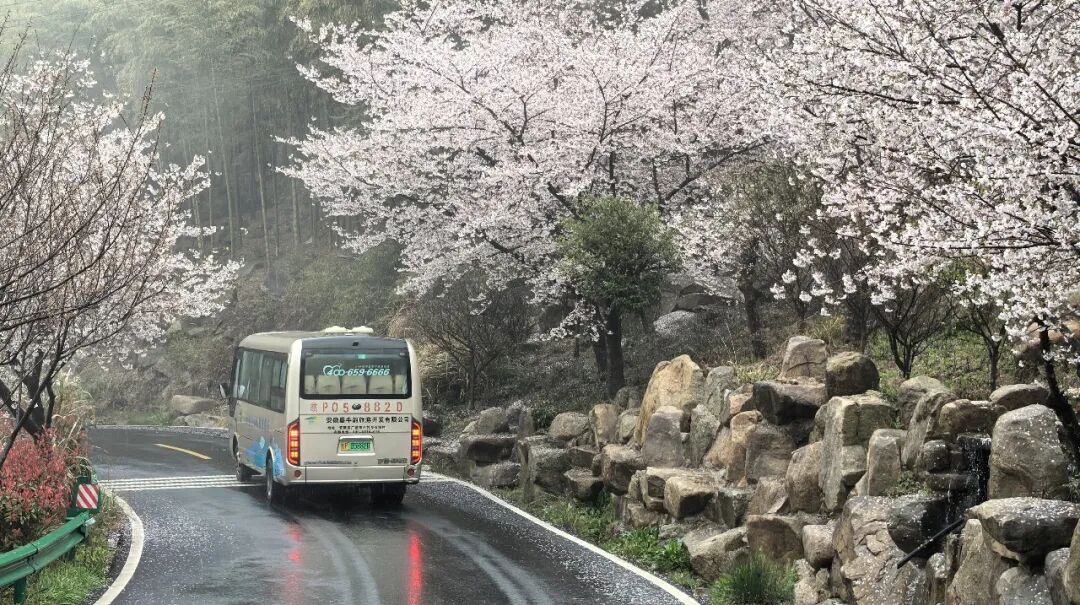 云蒸霞蔚,仙气缥缈。春雨里的云景牛山景区,雾锁青山,乌黑的盘山公路如一条腰带蜿蜒其间,偶有烂漫的樱花点缀路旁,在朦胧烟雨中若隐若现,美得如梦似幻。