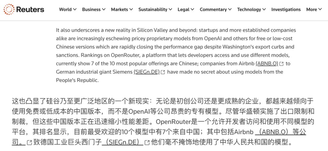 这种情况,从本质上说明中国模型正在成为一种基础设施。当AI从少数公司拥有的能力变成多数人的工具,原有的技术秩序自然会被重构。