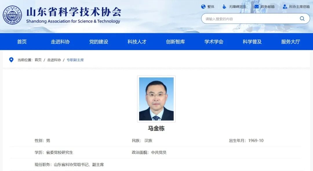 4月1日上午,青报君查询发现,省科协官网已更新显示马金栋的简介。