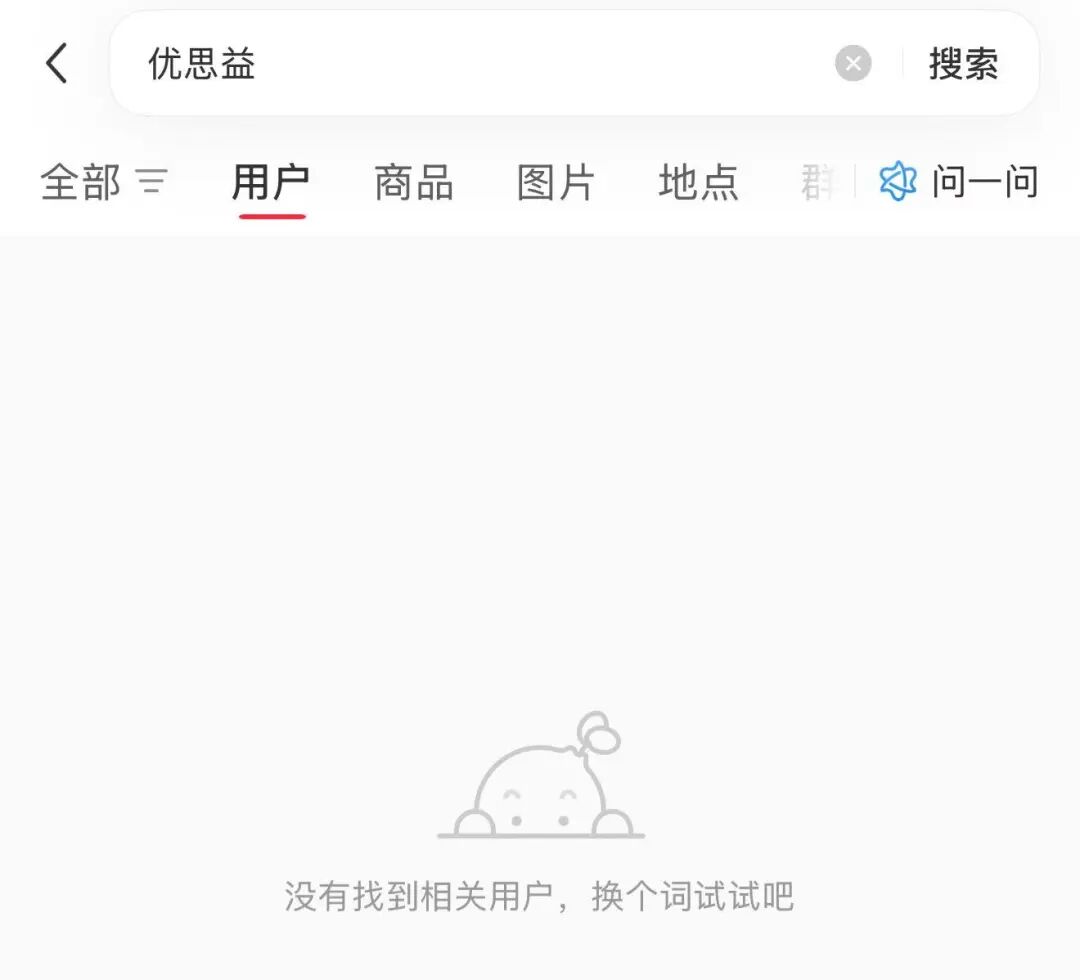 在抖音平台上搜索“优思益”,无论是搜索商品还是店铺信息,均显示“搜索结果为空”。