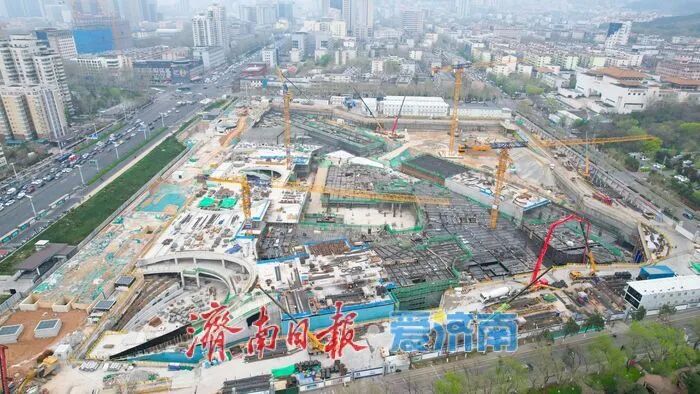 4月1日,济南轨道交通千佛山站TOD综合开发项目抢抓施工黄金期,全力推进主体结构施工。施工现场一片繁忙,大型机械往来穿梭,工人有序开展钢筋绑扎,正在浇筑混凝土底板作业,这座济南首个轨道交通地下TOD综合体已雏形显现。