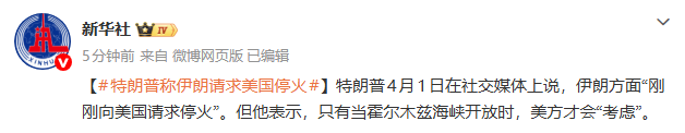 消息面上,据新华社,特朗普4月1日在社交媒体上说,伊朗方面“刚刚向美国请求停火”。但他表示,只有当霍尔木兹海峡开放时,美方才会“考虑”。