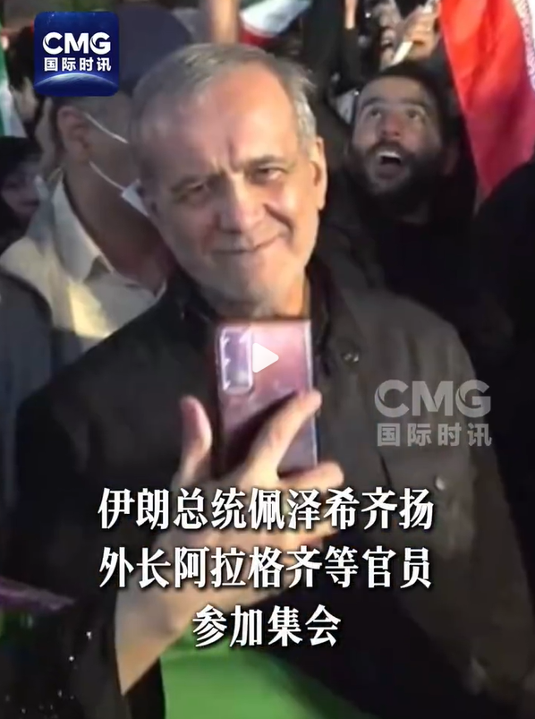 报道说,佩泽希齐扬在集会上与众多民众交谈,赞扬伊朗人民在捍卫制度和国家方面展现出的坚定意志和抵抗精神,强调民族团结、社会凝聚力以及维护伊斯兰革命成果的重要性。