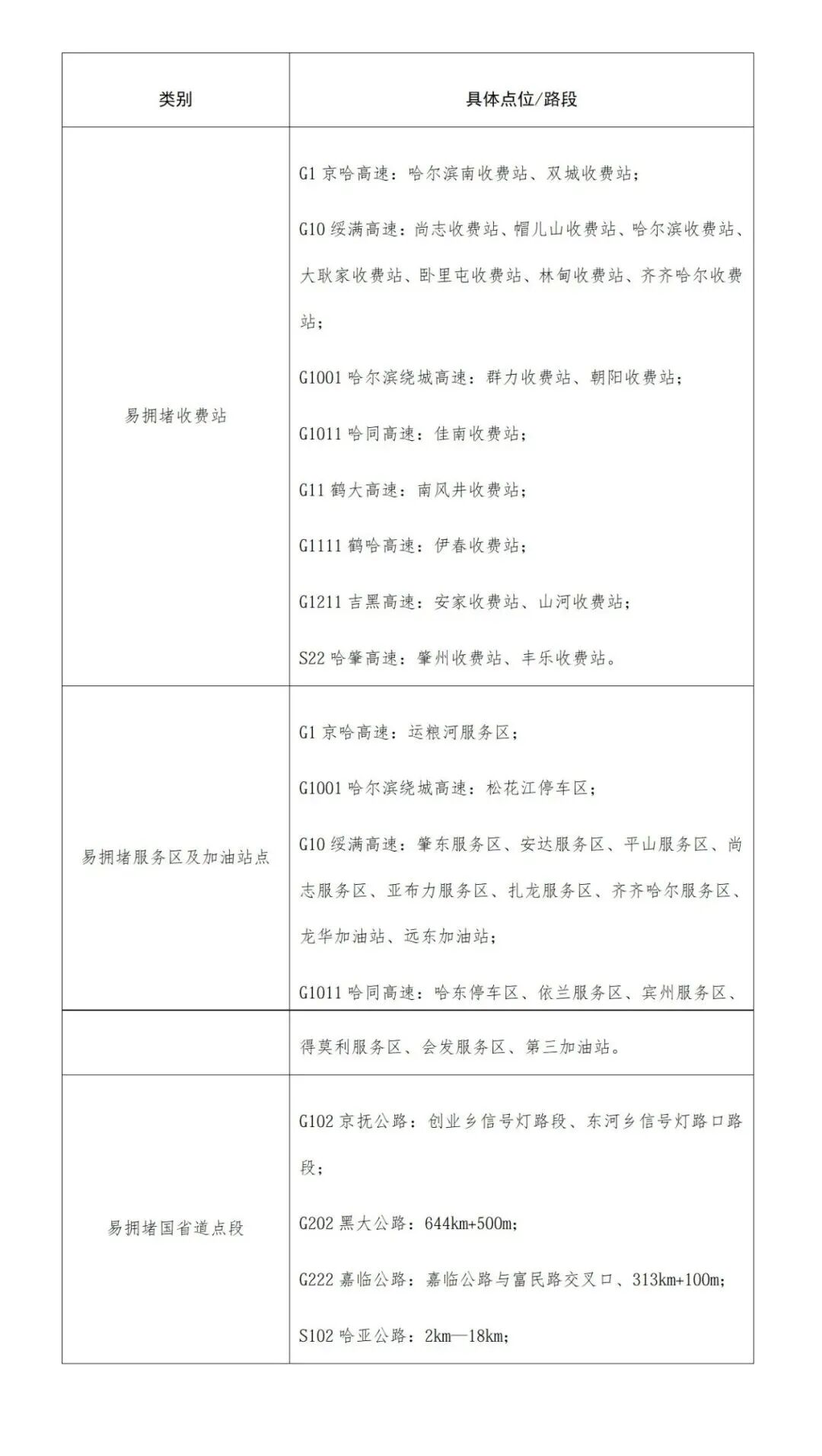 易拥堵收费站服务区及国省道点段