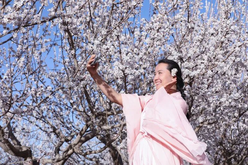 眼下,库车市迎来杏花盛花期。卜登鹏摄