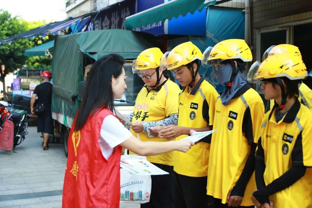 达州市法律援助中心普法志愿者为外卖员普及法律知识。