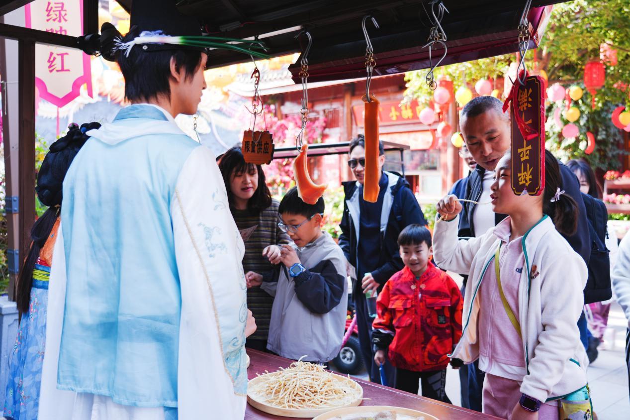 在清韵小镇区域,“折耳根挑战”成为人气互动项目,游客争相尝试生吃折耳根,在挑战中感受地道“川式”趣味。街区内的NPC花式互动同样吸引了大批游客参与,现场气氛热烈。