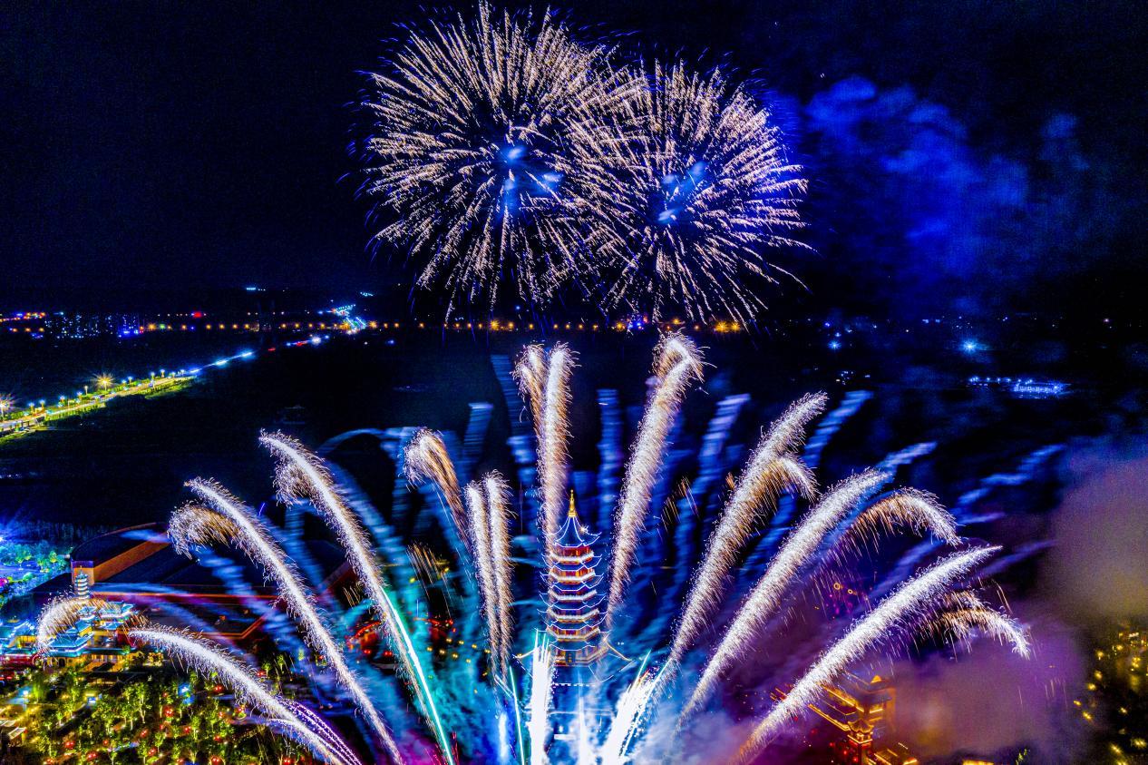 夜幕降临后,园区主舞台上演《极乐盛宴》演艺,国乐演奏与国潮簪花蹦迪交替进行。绵阳方特首次引入的蓝色系烟花也将持续至4月5日,在每晚的“花朝焰火秀”活动中准时绽放。