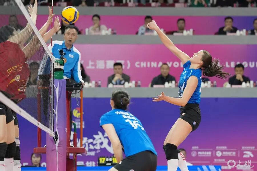 回到主场,上海女排背水一战,回敬对手一个3-0,将大比分扳平。