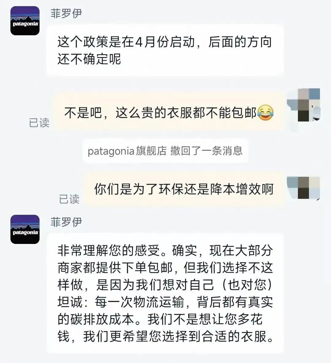 巴塔哥尼亚客服回复