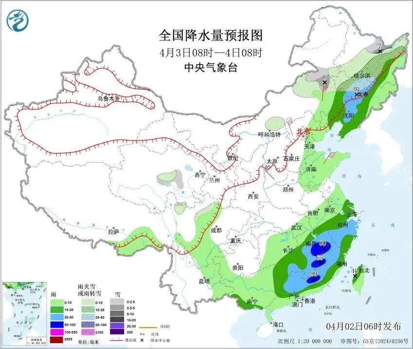 明天凌晨,我省大部地区有中雨,局部大雨,中西部地区局部伴有雷电。明天夜间,中东部地区还将出现雨夹雪。
