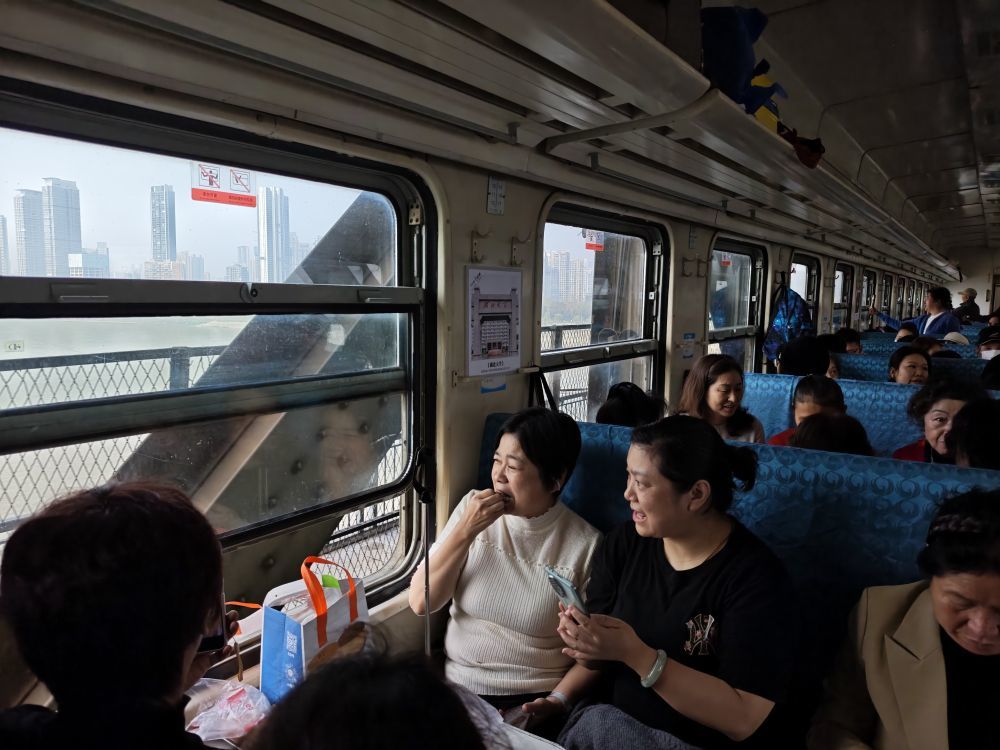 近日,记者从武昌火车站出发,搭乘从武昌至武昌的4818次列车,全程2小时,横跨长江,途经黄鹤楼、武汉长江大桥和东湖……在慢行的绿皮车厢里,感受了一趟“穿越时空”之旅。