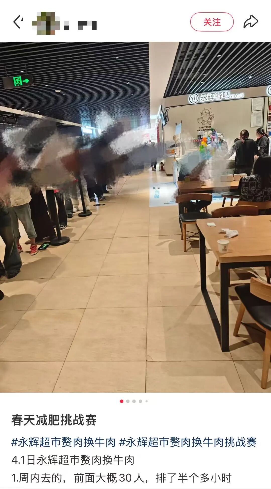 据悉,4月1日至30日,永辉超市全国门店同步上线“来永辉,赘肉换牛肉”活动,减重3斤即可兑换1斤牛肉、鲜活小龙虾或佳沛奇异果(三选一),每人封顶可兑换3斤。