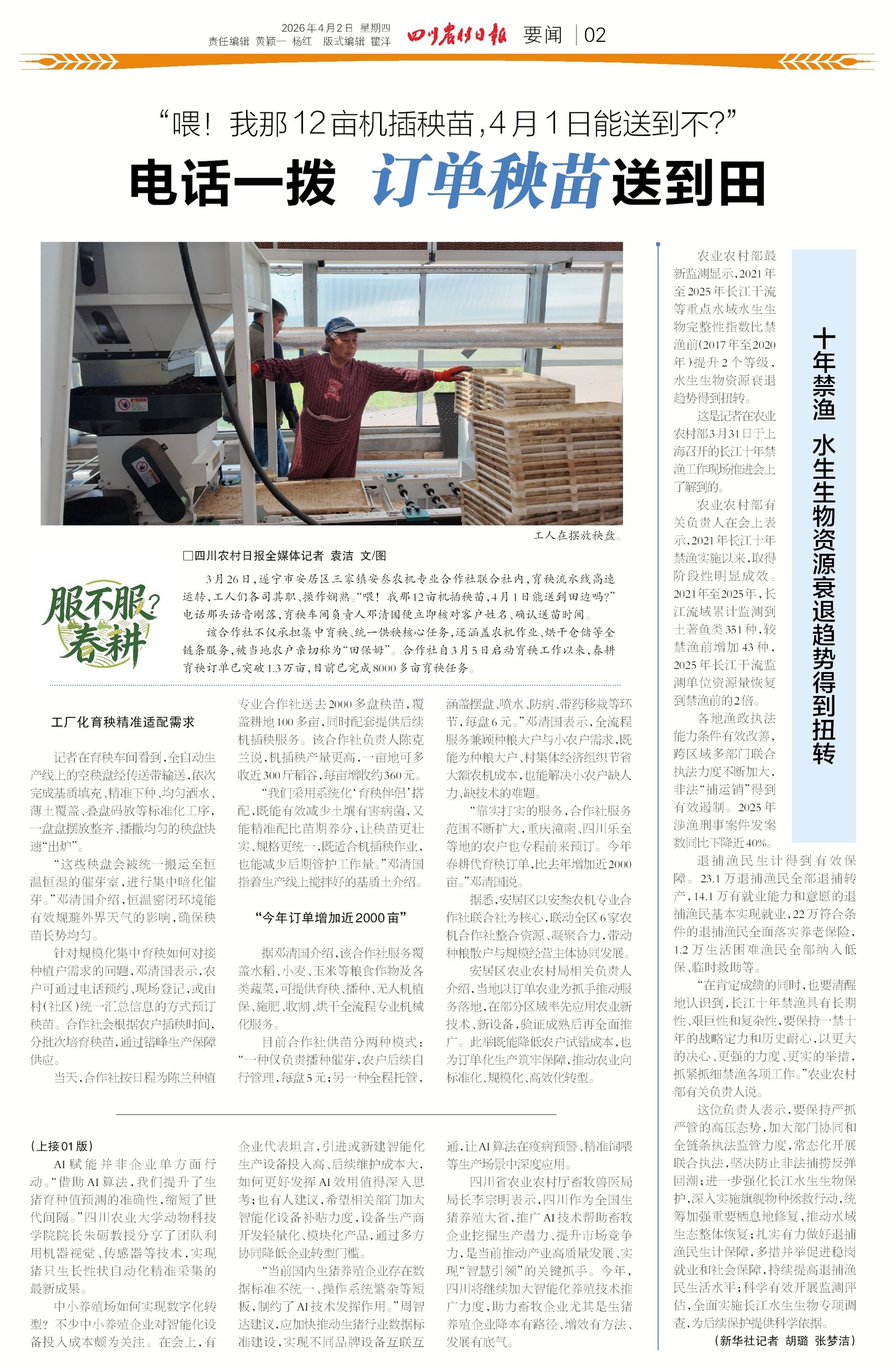 “喂,我的秧苗能按时送到不?”在遂宁安居区,一个被农户亲切称作“田保姆”的合作社,把育秧搞出了工厂范儿——流水线自动播种、恒温催芽,还能按需排期、精准配送。服务更贴心:5元催芽、6元全程托管,大户小户都管够。