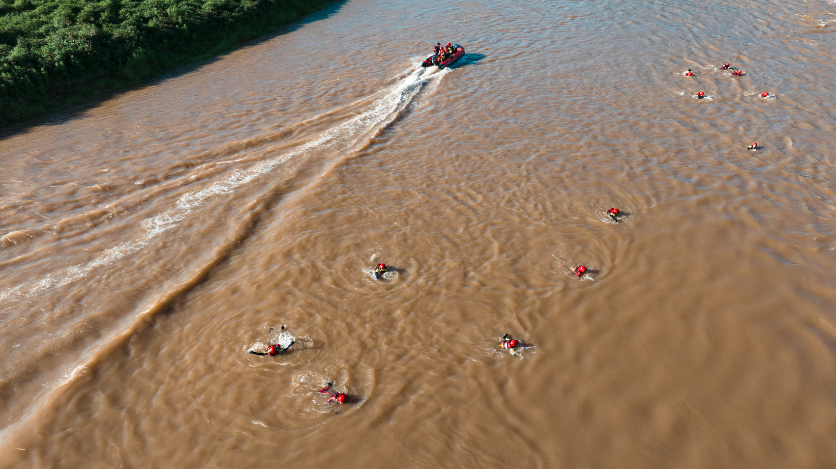 赤水河激流奔涌,训练现场热火朝天。参训队员以“向险而行、向战而练”的昂扬姿态,聚焦入水法、急流泳姿、浅滩涉水横渡、抛绳包救援、V型救援、舟艇驾驶等21个实战科目,在教练员逐人指导、手把手教学下,反复实操、打磨技能、锤炼本领。从舷外机故障快速排除到3:1倍力系统灵活运用,从模拟人员落水、船只遇险等突发场景协同处置,每一个科目都紧贴实战、务求实效,就是为了提升队员在复杂水域环境下的应急处置、协同作战和自救互救能力。