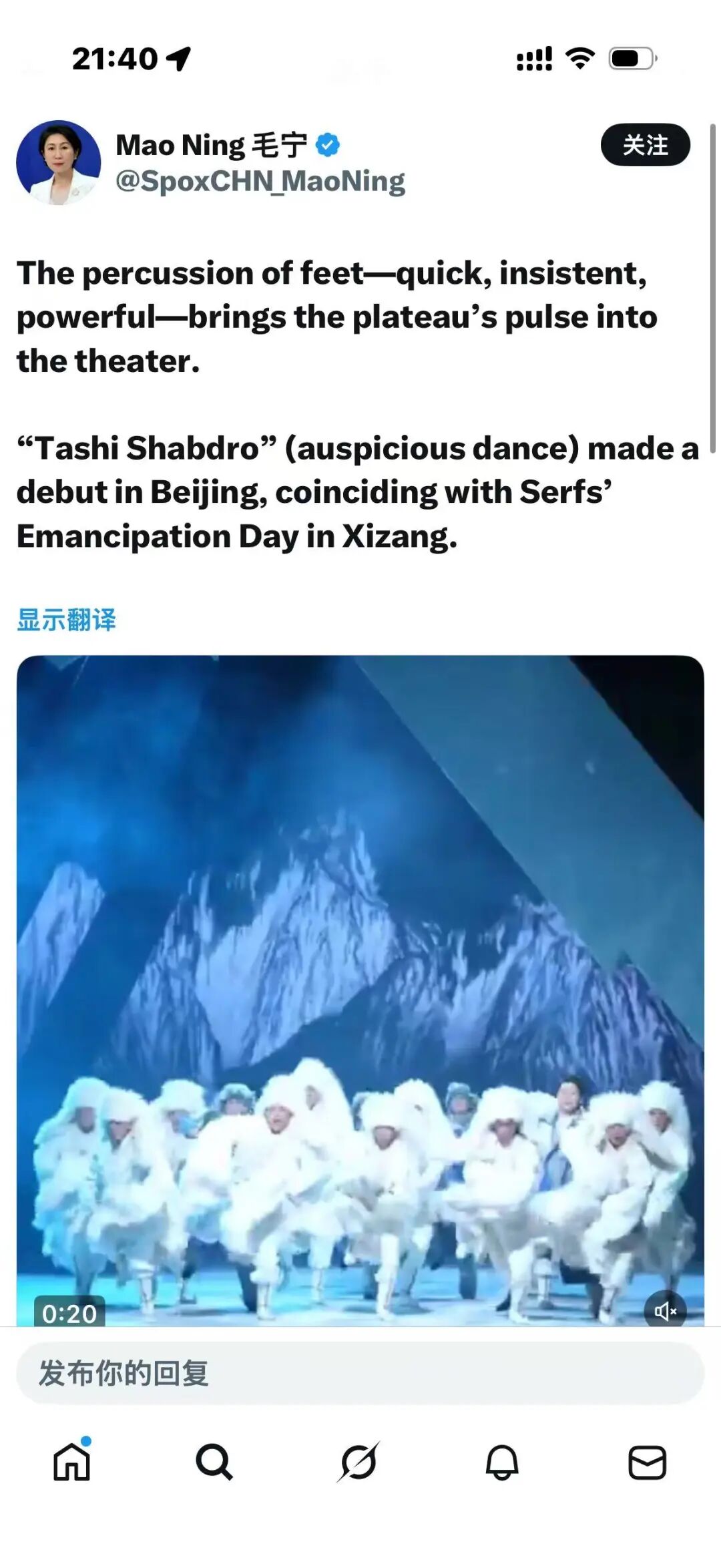 3月31日,外交部发言人毛宁向世界推介《扎西夏卓》。