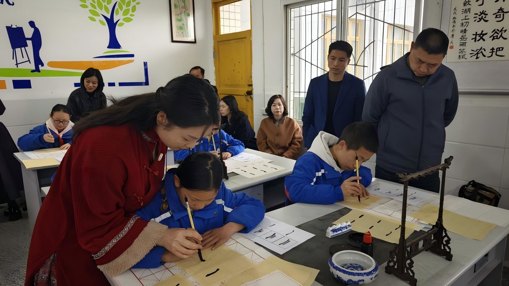 活动期间,县关工委企工委副主任余胜久等“五老”走进学生群体,将对革命先烈的缅怀与崇敬融入艺术教学,以笔墨丹青传递赤子之心,以艺术创作厚植爱国情怀。书法课堂上,老艺术家马兴领手把手指导学生研习书法,将对先烈的敬仰之情凝于笔端、融于笔墨,让青少年在一撇一捺间感悟传统文化魅力,在墨香萦绕中寄托追思之情;美术课堂以“方寸天地,红色篆刻”为主题,系统讲解篆刻艺术精髓,引导学生提取红色文化核心元素,将红色精神与篆刻创作深度融合,让学生熟练掌握形制、章法、线条三大篆刻核心特征,精准把握元素提取、形式匹配、内涵融合的红色文化与艺术创作融合路径。红色篆刻不仅成为传承红色文化的艺术载体,更化作镌刻革命记忆的“微型纪念碑”,让每一枚印章都承载红色故事、传递革命精神。
