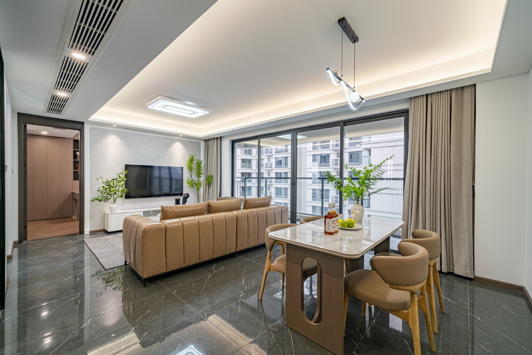 全屋采用现代简约精装风格,布局开阔合理,全系标配轩敞客厅、独立餐厨空间及约6.5—7米宽景阳台,部分户型为一梯一户、南向大横厅布局、酒店式主卧套房,带来舒展与精致的居住感受。同时,配置美的全屋中央空调,华帝烟机灶具,品牌冰箱、洗衣机、智能电视等全套家电,配齐沙发、床、餐桌椅等品质家具,实现拎包入住。