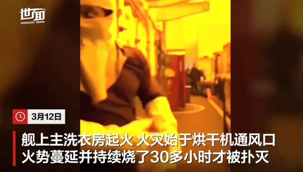 3月12日,舰上主洗衣房起火,导致航母上100多张铺位无法使用,约200名水兵因吸入烟雾接受医学检查。