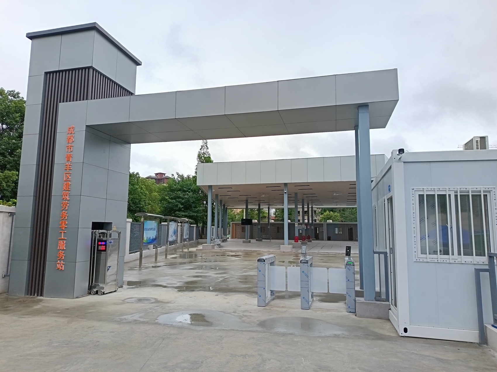 服务站2024年7月正式投入使用,2026年2月扩建搬迁新址,占地面积5300平方米。这里聚集了众多川内建筑业农民工,日均入场农民工1000人次。2024年以前,这里还是马路劳务市场,安全隐患重重。如今,车辆统一停放,工具统一存放,公安、交警、街道办等约30名工作人员每日值守,秩序井然。