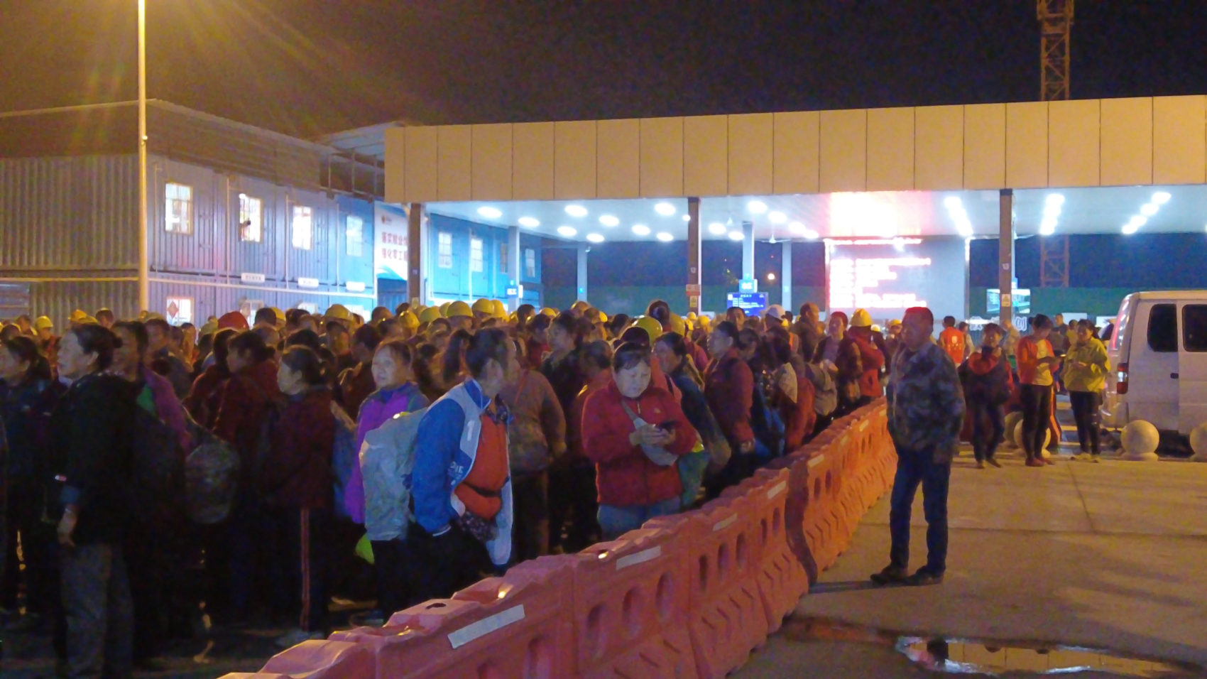 凌晨5时,工人们在服务站聚集。