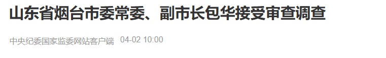 中央纪委国家监委网站讯 据山东省纪委监委消息:烟台市委常委、副市长包华涉嫌严重违纪违法,目前正接受山东省纪委监委纪律审查和监察调查。