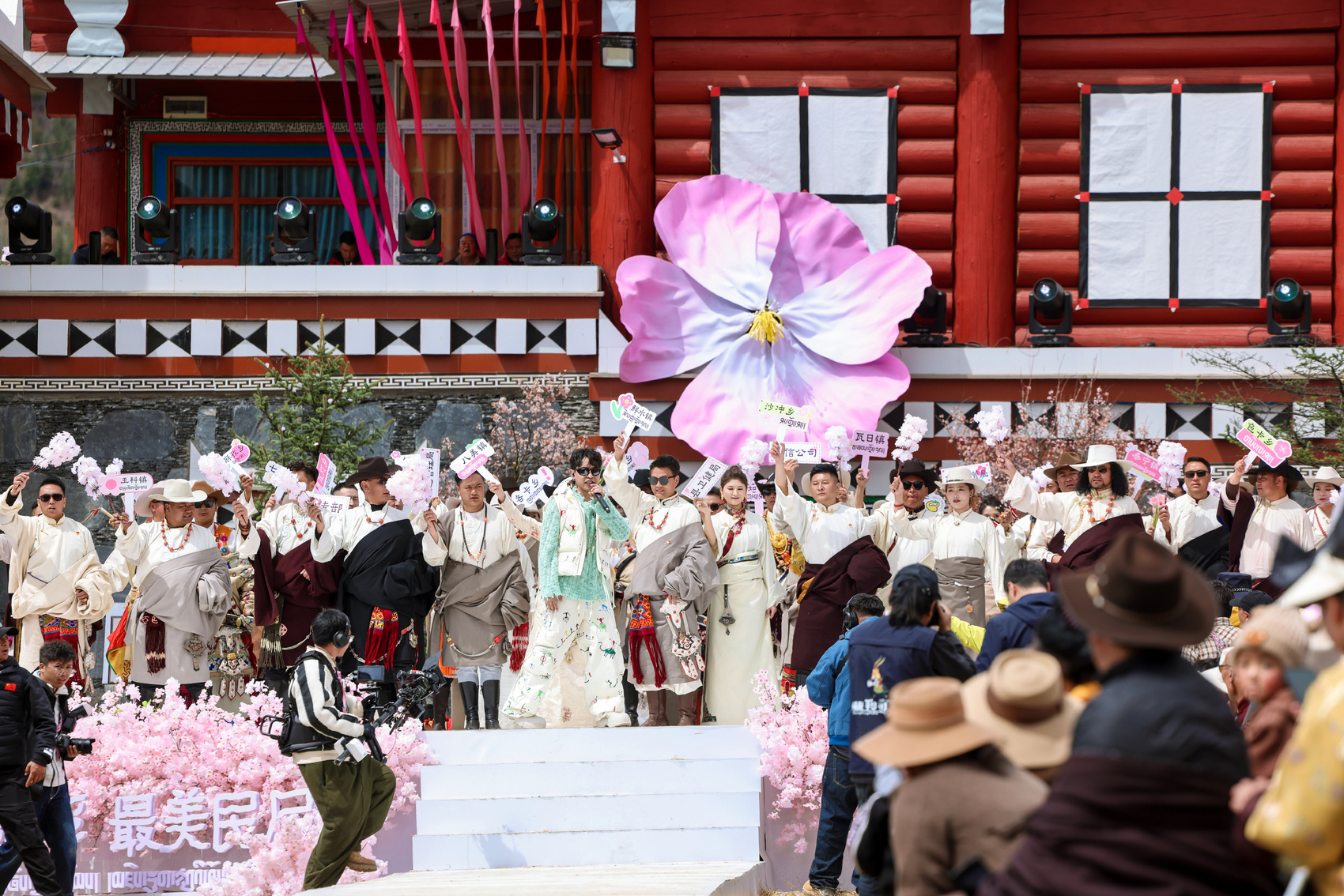 开幕式后的文艺展演同样精彩纷呈。整场演出以“杏花归处是吾乡”为主题,分为“草原牧歌”“沃野耕乡”“幸福花开”三个篇章,由道孚县各界群众代表联袂出演,时装秀、本土服饰情景秀与特色歌舞交织上演,生动呈现出当地独有的人文风情与精神风貌。