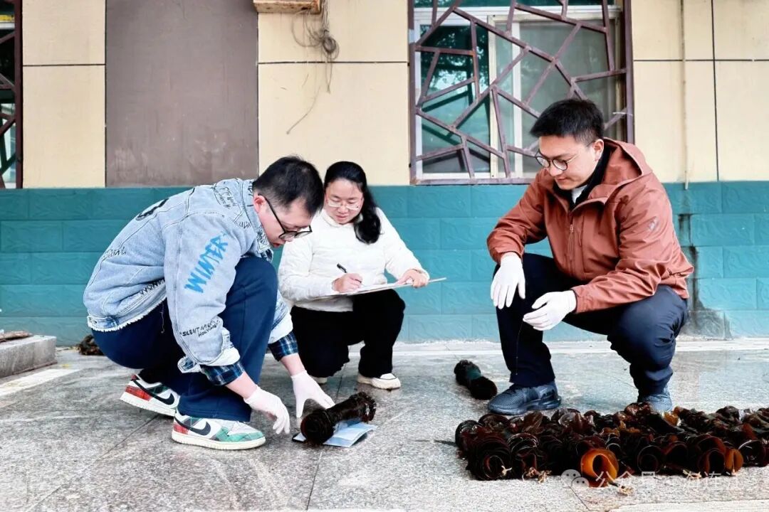 验收期间,专家组深入黄岐湾海带养殖区,现场观察海带在海域中的附着稳定性、生长状态与抗逆表现,并随机抽取同一片海区里养殖的“无边海带”和同期种植的普通海带各30株进行抽样测产以及生物学测量。