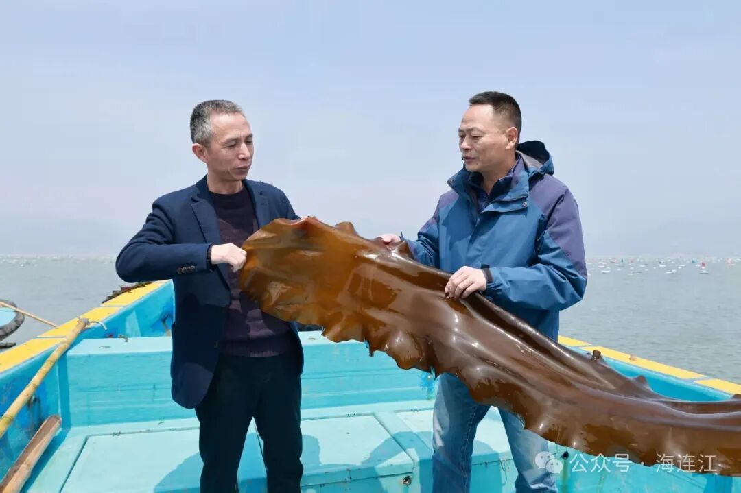 近日,由福建省水产技术推广总站、福建农林大学海洋学院、福州市海洋与渔业技术中心等单位组成的专家组来到筱埕镇官坞村,开展“无边海带”新品种二次中期验收工作。经过实地勘查、数据检测、现场质询等多环节严格评审,该品种在生长速度、抗逆性、产量等核心指标上均达到预期目标,顺利通过验收。