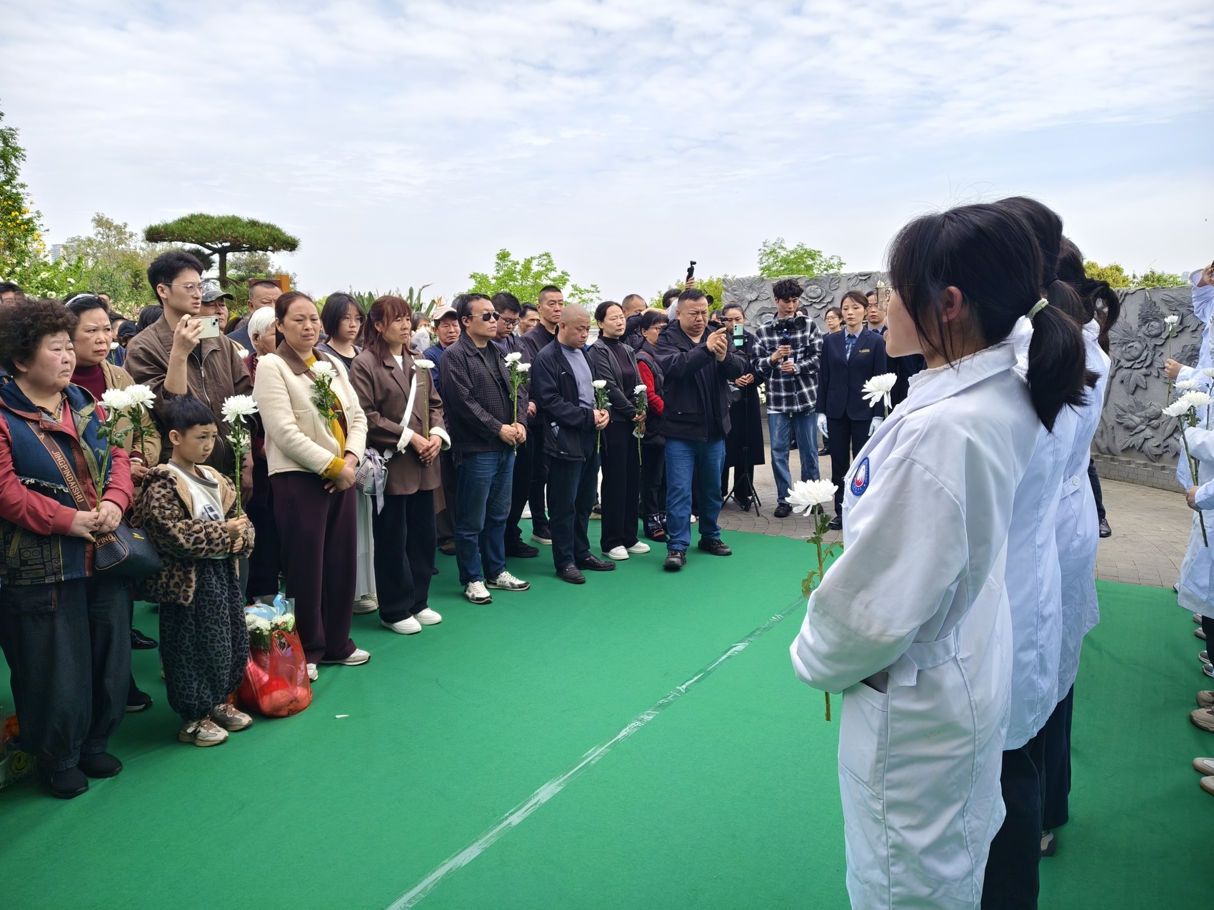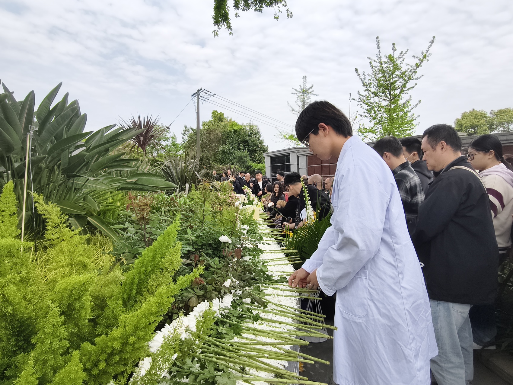 遗体捐献志愿者家属、成都医学院师生代表、红十字会工作人员等百余人以敬献鲜花、诗歌朗诵、医学生宣誓等形式,向这些用生命诠释大爱的“大体老师”致以最深的敬意。