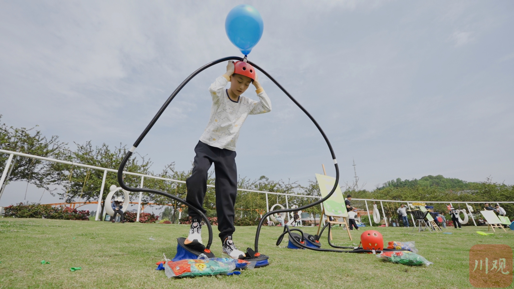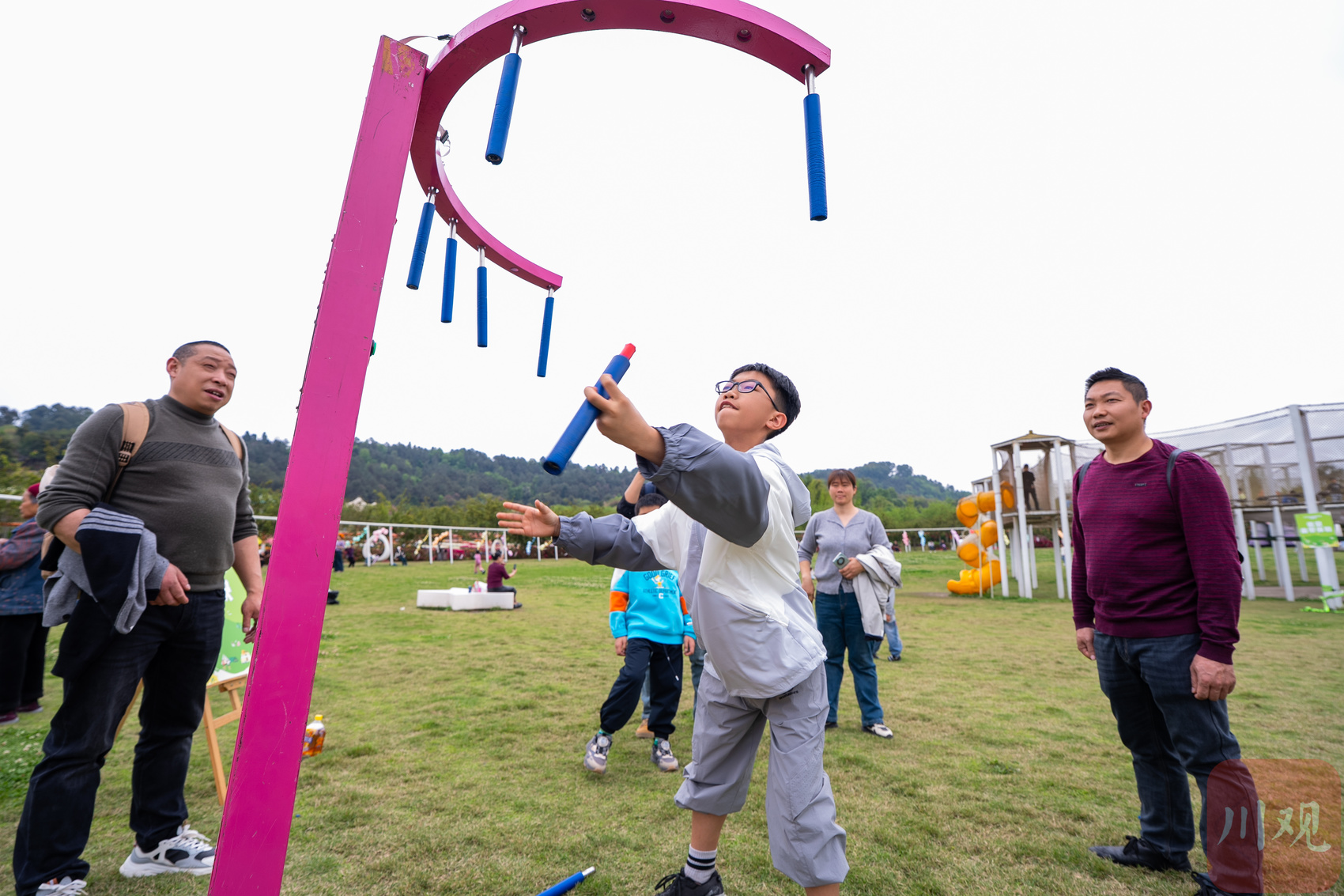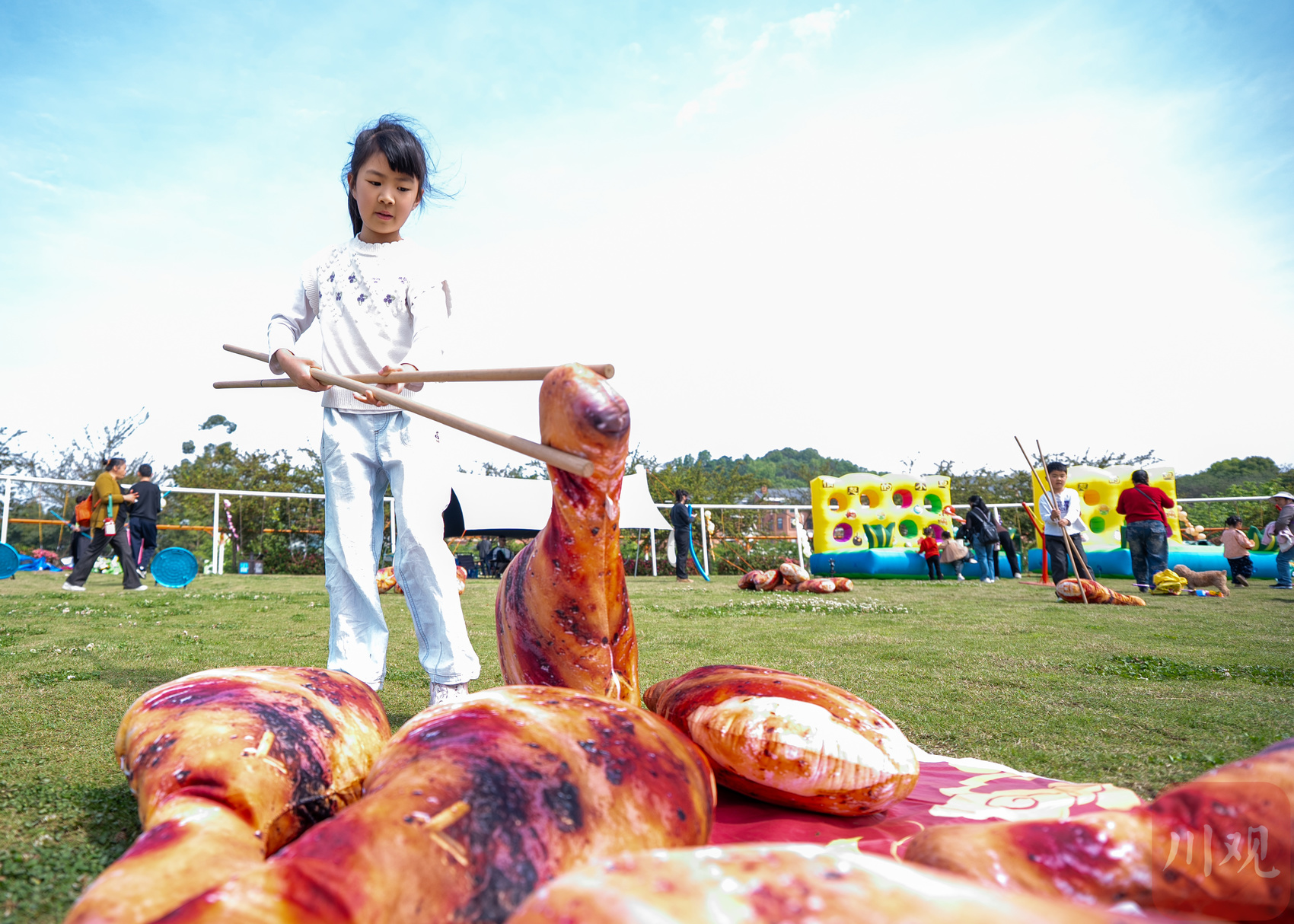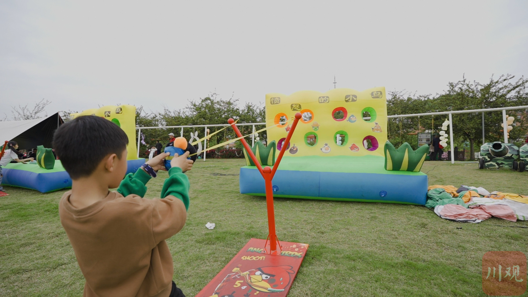 小朋友正在体验现实版“愤怒的小鸟”
